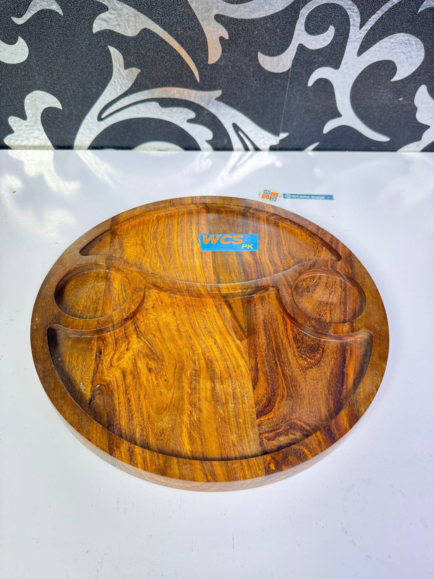 14-inch round serving platter with 2 partitions + 2 dip-sauce ports β perfect for snacks & dips. Keep flavours separate. Stylish & practical for entertaining.